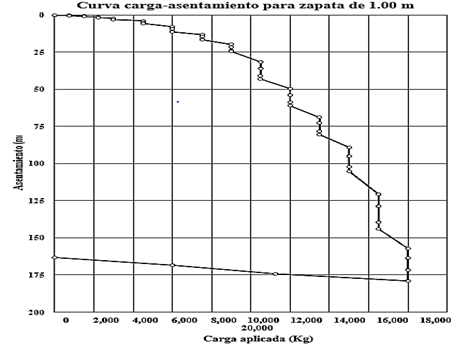 Curva carga-asentamiento para la zapata de prueba de 1.00 m.