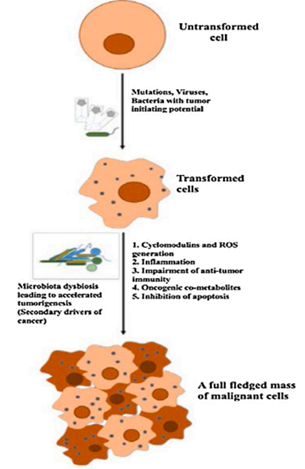 Fig. 2 Mecanismo básico de la carcinogénesis impulsada por microbios