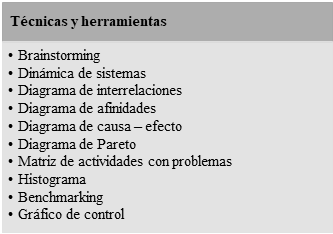las siguientes técnicas y herramientas: