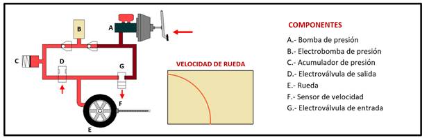 Funcionamiento del ABS aumentado presión de frenado.