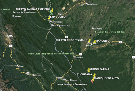 Son varias las comunidades expuestas a la desaparición de parte de esta enconada persecución y etnocidio de parte del “Estado plurinacional”, “y no sabremos dónde buscar medios para la esperanza en la globalización y para la globalización de la esperanza hasta que comprendamos cómo la globalización puede producir nuevas formas de odio, etnocidio e ideocidio”. (Appadurai, 2007) de manera personal, señalo entre muchas otras, la comunidad de Maniquisito Alto, no considerada dentro del Territorio Comunitario de Origen T’simane, y expuesta a los atropellos del despojo de sus territorios de parte de los interculturales, las comunidades Eyiyoquibo y Puerto Salinas de la nación Esse Ejja.