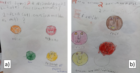 En la Figura 2-b) se muestra el avance logrado en las meditaciones, donde los alumnos ya mantienen la atención y concentración durante toda la sesión. Las meditaciones tenían como objetivo principal relajarlos, antes de iniciar con la sesiones de aprendizaje, estas tenían una duración de 5 a 10 min, en las cuales los alumnos se mostraban curiosos, abrían sus ojos, se sentían extraños al tener un tiempo de meditación dentro de las clases, que se suponían no incluía las sesiones de educación socioemocional, así que sus caras lo decían todo, caras de asombro, de no entender que estábamos trabajando, posteriormente se fueron haciendo a la idea y las meditaciones fueron más extensas de acuerdo a como se percibía al grupo. Es notorio que los alumnos aprendieron a controlar sus emociones y practicar la meditación cada vez que ellos quisieran sentir la tranquilidad, el que aprendieran a colocar sus emociones en una caja, como el monstruo de los colores, así como menciona Bisquerra, la educación emocional es constructo que abarca la formación integral de la persona, y en estas actividades se complementa su enseñanza no solo intelectual, también emocional.