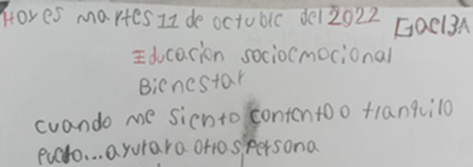 The following work addresses the socio-emotional situation faced by some of the students of a primary school, in which the diversity of family characteristics was present in the students' learning, which caused a lack of self-knowledge and self-regulation to act assertively. in the various school activities, as well as the consequences of a pandemic called Covid-19, which the students experienced, as part of the “Sana Distancia” strategy, the students attended first grade virtually, which did not help social development. and school in an ordinary way, entering second grade with their own characteristics, such as lack of self-confidence, fears, anxieties, isolation, impulsivity, among others, which directly affected their learning process.
