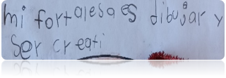 Los alumnos reconocen sin dificultad qué acciones pueden hacer al estar con una actitud positiva. Después de trabajar la sesión completa las alumnas identifican otras fortalezas en ellas, la alumna azul identifica como fortaleza el que puede hacer muchos amigos (Figura 6).