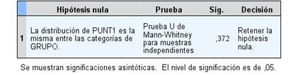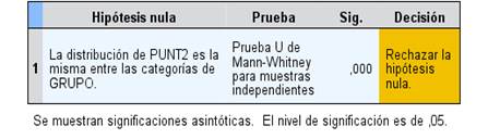 Nota. La figura muestra el resultado de la prueba de hipótesis con la prueba U de Mann-Whitney para muestras independientes.