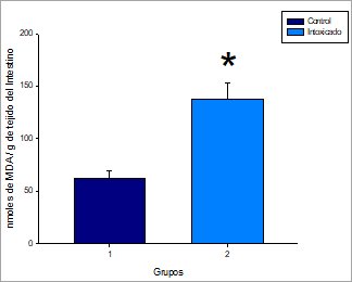 Nota: Se observó un aumento significativo de la lipoperoxidación. p<0.05 t student vs control.