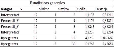 Tabla 2: Estadísticas en base al # de preguntas, interpretación y percentil