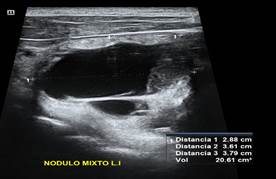 Imagen 1. Nódulo mixto pre ablación etanol Fuente: Elaboración Propia