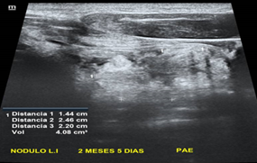 Imagen 2. Nódulo mixto post ablación etanol Fuente: Elaboración Propia |