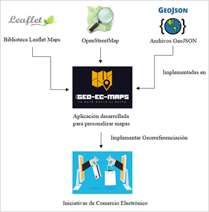 El principal resultado alcanzado es la aplicación de código abierto denominada Geo-EC-Maps, que les permite a las iniciativas de comercio electrónico implementar funcionalidades de georreferenciación para incrementar el nivel de confianza de sus potenciales compradores, aportando a que los comercios electrónicos tengan la posibilidad de aumentar su credibilidad al agregar estas características.