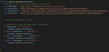 Personalización del mapa: La aplicación proporciona la posibilidad de personalización del mapa según las necesidades del usuario. Para utilizar las capas existentes la aplicación ofrece la personalización usando funciones para anexar estilos, como se demuestra en la figura 3.