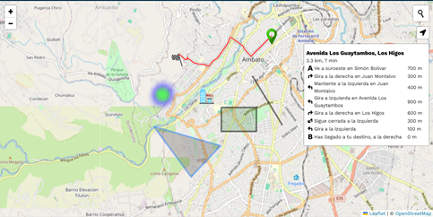 Por esto se ha tomado en cuenta que se puede trabajar con características que pueden ser; puntos, rutas, figuras, zonas de calor. En la figura 4, se muestra el resultado luego de trabajar con estas características en el mapa de la aplicación.