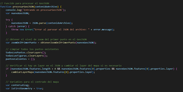 La función de carga de datos tiene la capacidad de validación del archivo GeoJSON para su correcta lectura y carga, tal y como se muestra en la figura 10.