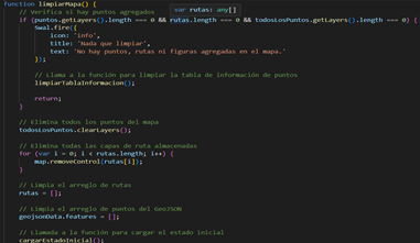 Se puede limpiar el mapa y el archivo GeoJSON para trabajar en una nueva creación. |