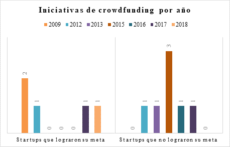 Por otra parte, se tiene que observar la madurez del crowdfunding como método de financiación de lo cual se exponen los años en los cuales se lanzaron las iniciativas exitosas de crowdfunding y aquellas que no alcanzaron su meta, cabe recalcar que el hecho de que no hayan alcanzado su meta de microfinanciación no quiere decir que no despegaron y desaparecieron del mercado (Véase Tabla 1).