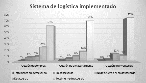En cuanto a conocer el sistema de logística implementado, también se constató que la empresa, objeto de estudio, cuenta con un sistema de gestión de logística que se implementa en el área de compras, almacenamiento e inventarios. Esto permite la gestión efectiva de los procesos de aprovisionamiento (Custodio Mendoza, 2021), producción y distribución de productos gastronómicos (Sivaramakrishnan y Krishna, 2018).