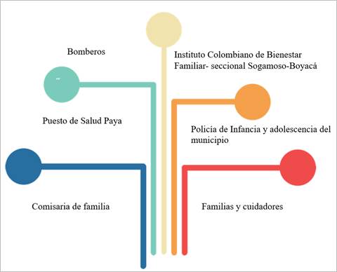 La mayoría de las AE, proponen trabajar con las entidades territoriales como apoyo en la atención integral de las niñas y niños, ellas argumentan que es necesario hacer una articulación intersectorial como eje de participación colectiva en el que ellas se puedan vincular desde posturas políticas, administrativas, pero también pedagógicas y educativas. Hacen mención a las entidades con las que posiblemente se pueden articular expuestas en la figura 4.