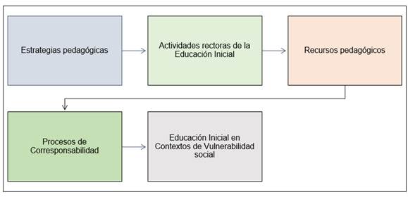 Estrategias Pedagógicas Actividades rectoras de la educación Inicial Recursos pedagógicos Trabajo Intersectorial Educación Inicial en contextos de vulnerabilidad social. |